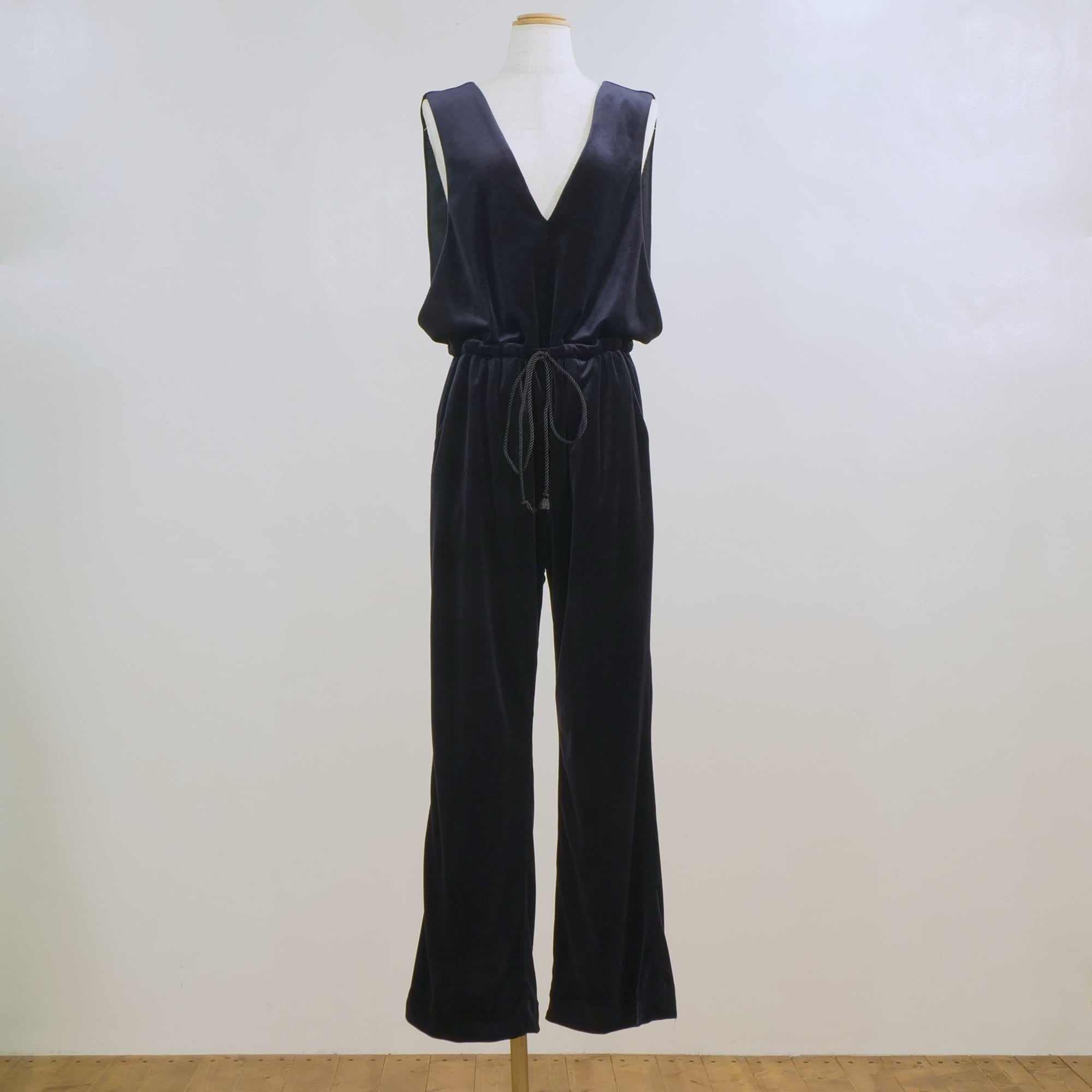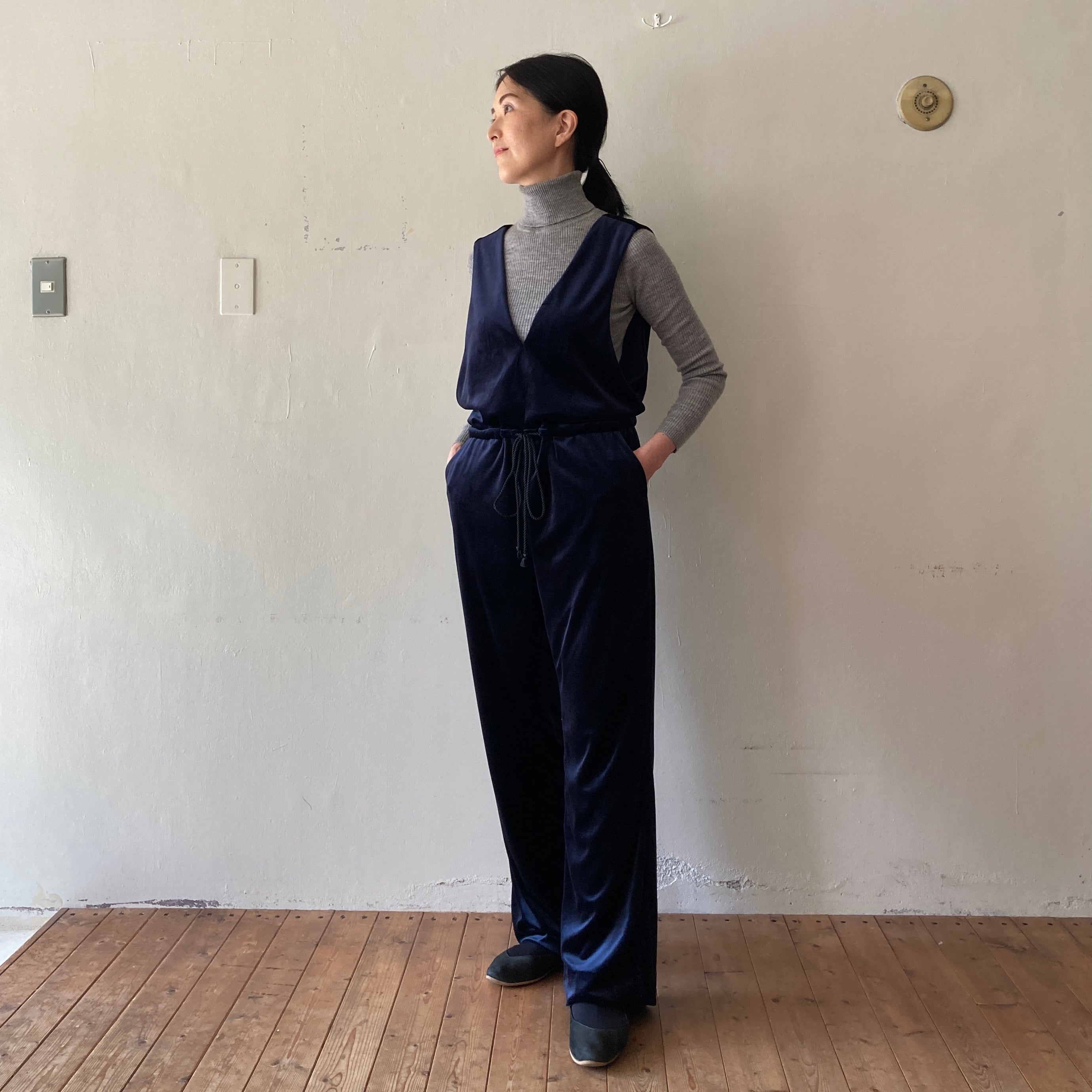 なめらかな手触り、光沢が美しいベロア生地で作ったサロペット。